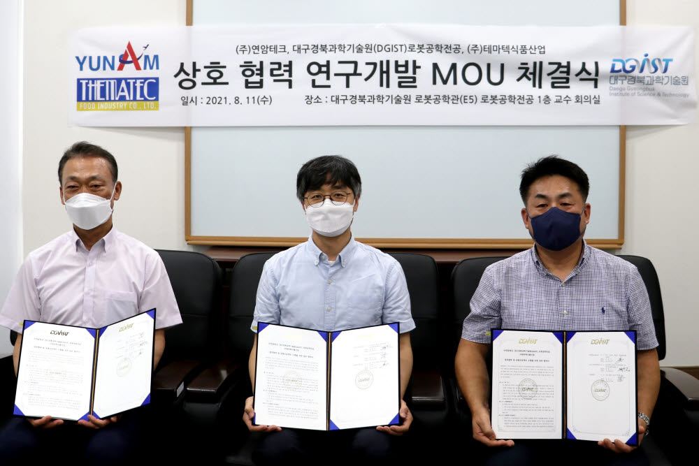 DGIST는 이와 관련 최근 연암테크, 테마텍식품산업과 업무협력 협약서(MOU)를 교환했다. 이번 협약으로 양돈과 도축, 육가공분야에 로봇, 자동화, 비전기술 등을 적용해 해당분야의 열악하고 위험한 작업환경을 크게 개선할 수 있을 것으로 기대된다.